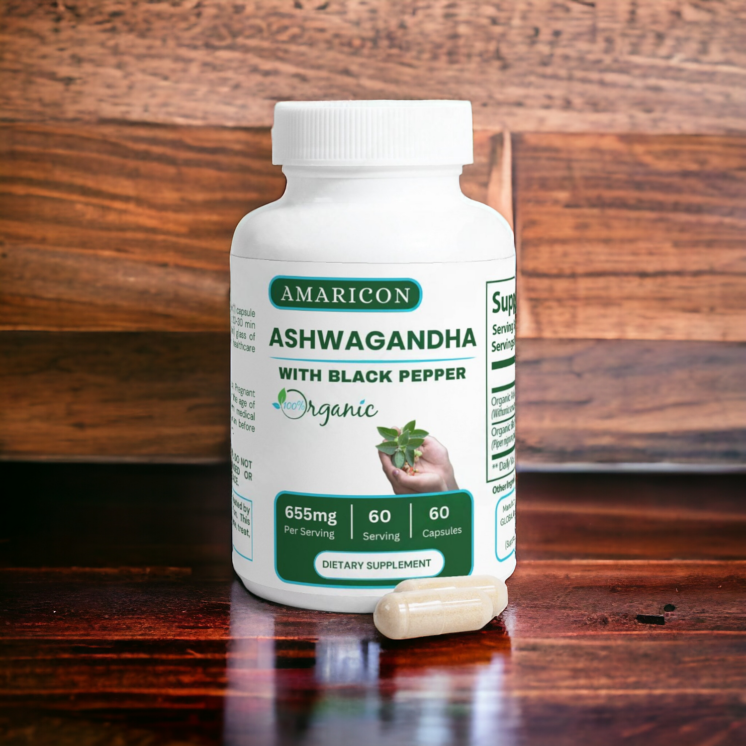 Are you feeling overwhelmed by daily stress, struggling with sleepless nights, or constantly battling low energy and mental fatigue? AMARICON Ashwagandha Capsules offer a natural and time-tested solution to help you regain your calm, resilience, and inner balance. Rooted in ancient Ayurvedic tradition, Ashwagandha is a powerful adaptogen that supports your body’s ability to cope with stress, promotes restful sleep, and enhances mental clarity—helping you feel centered and capable no matter what life throws your way.