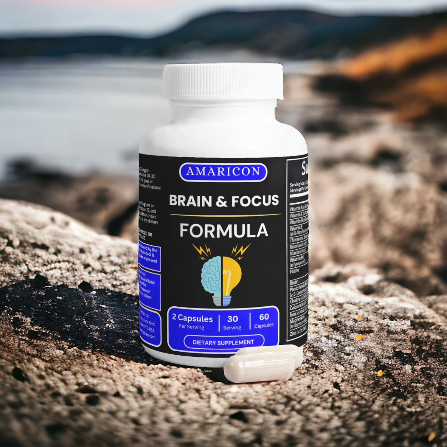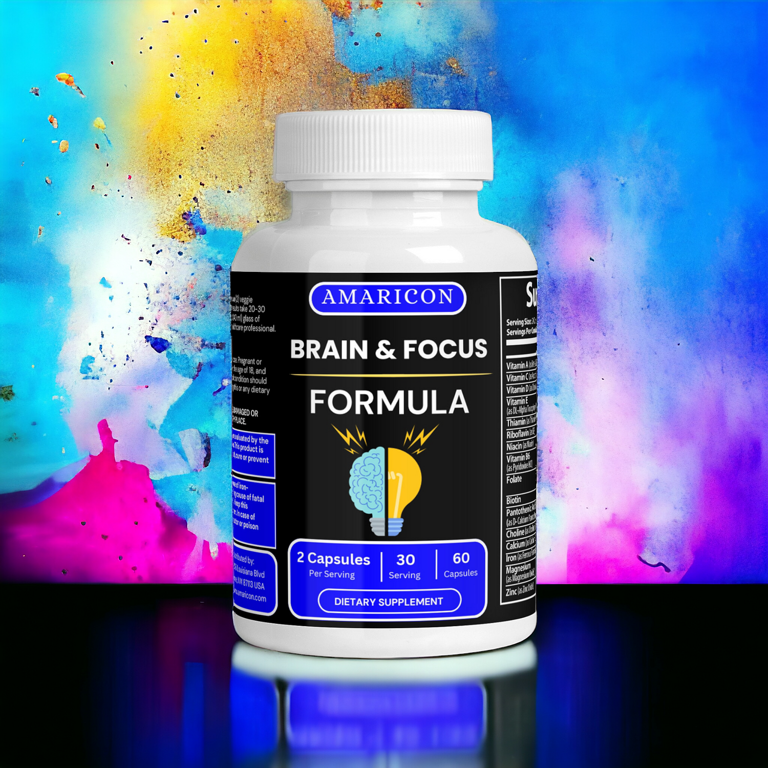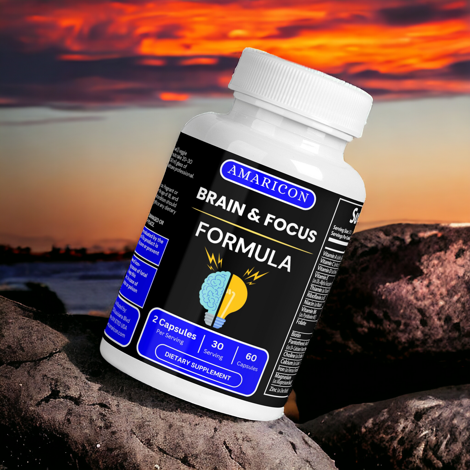 AMARICON Brain & Focus Formula is a dietary supplement designed to enhance mental clarity, focus, and memory. It contains a blend of natural amino acids, plant extracts, and essential vitamins and minerals to support cognitive function and overall mental well-being.