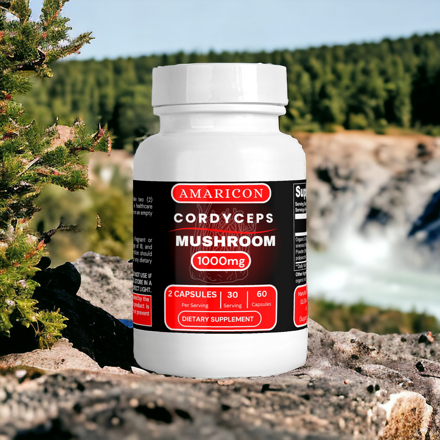 AMARICON Cordyceps Mushroom Capsules are a natural supplement made from organically cultivated Cordyceps Sinensis, designed to boost energy, enhance endurance, and support cardiovascular health.