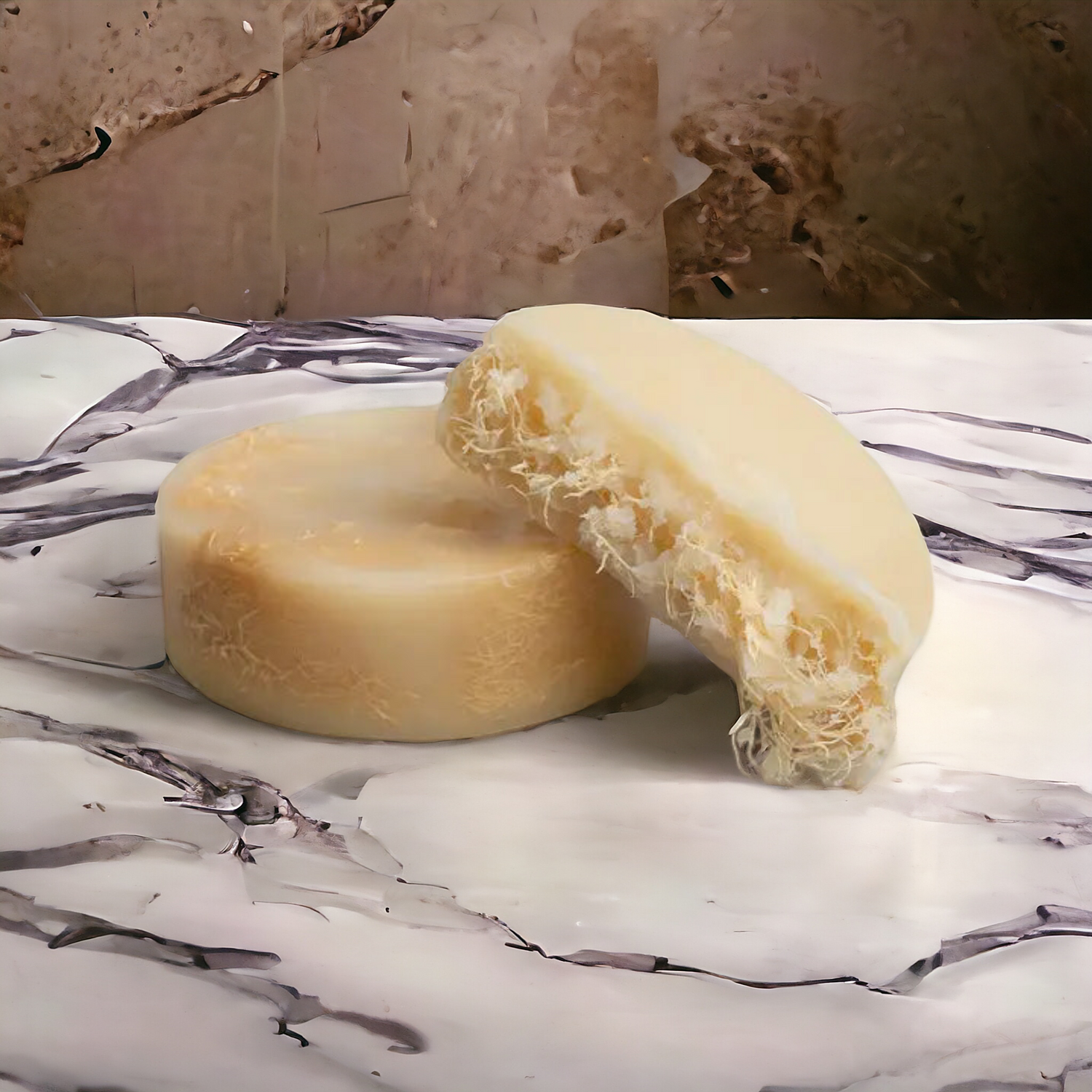 Natural luffa is embedded directly into the soap, providing gentle physical exfoliation that lifts dead skin cells and smooths rough areas. It’s fully biodegradable — kind to your skin and to the planet.