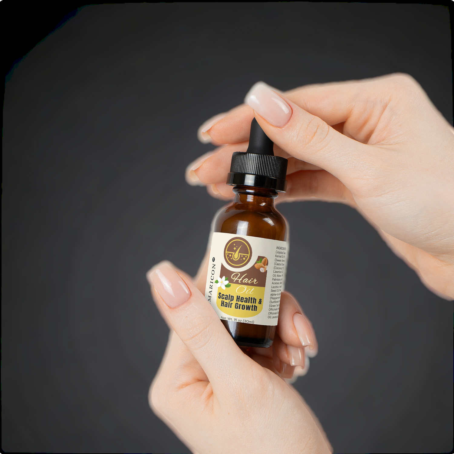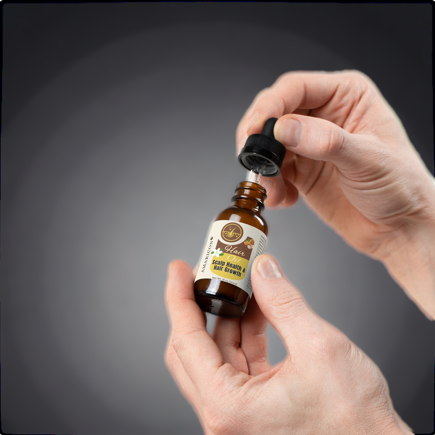 AMARICON Hair Oil for Scalp Health and Hair Growth is your ultimate solution for hydrated, nourished, and revitalized hair. With a blend of Jojoba, Argan, and Sweet Almond Oils, this formula deeply moisturizes the scalp and hair, preventing dryness and improving texture. Experience the transformation to smoother, shinier hair that radiates health.