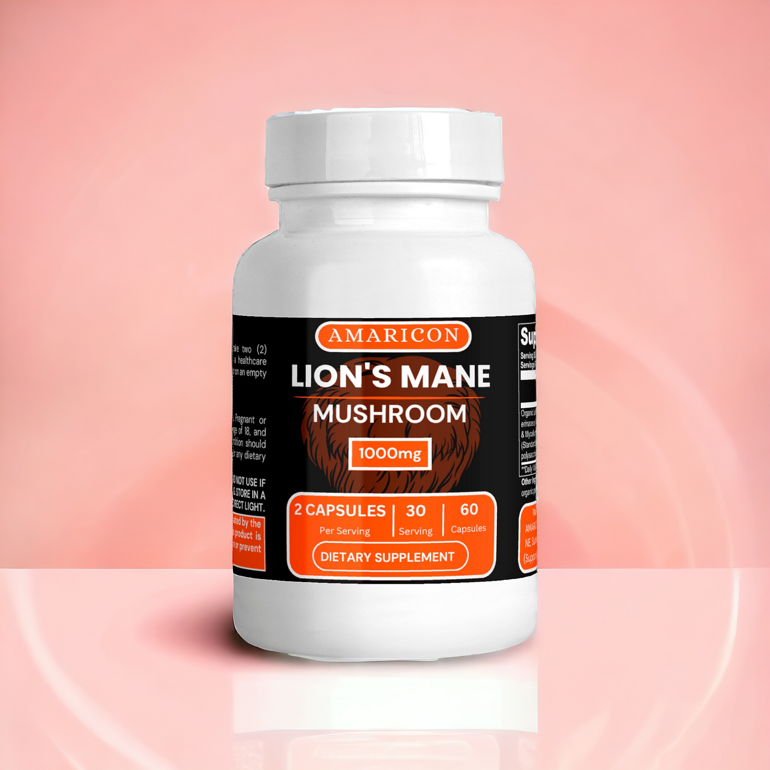 AMARICON Lion's Mane Mushroom is a natural nootropic supplement designed to enhance cognitive function, support mental clarity, and promote emotional well-being. Made from organic Lion's Mane mushrooms, this supplement is ideal for those looking to boost memory, focus, and overall brain health.