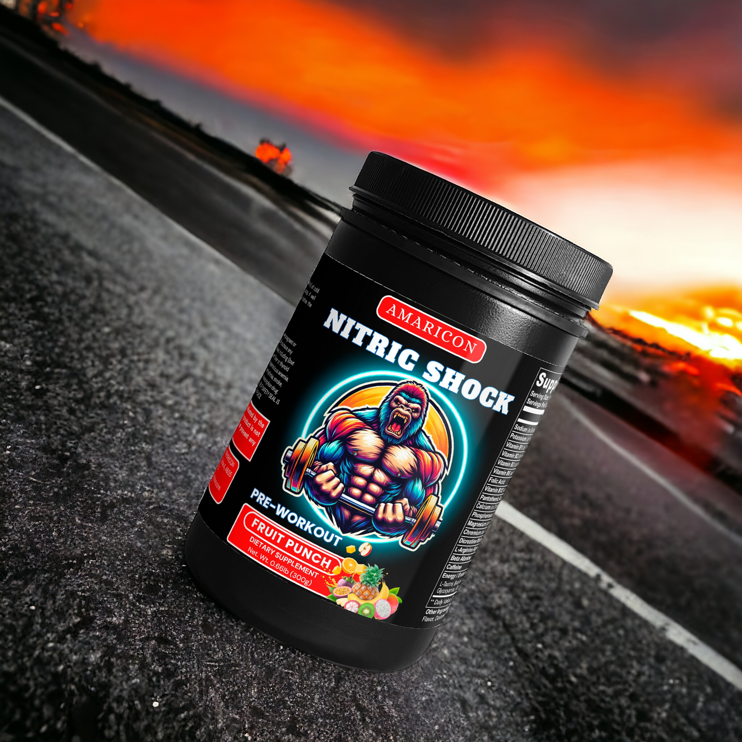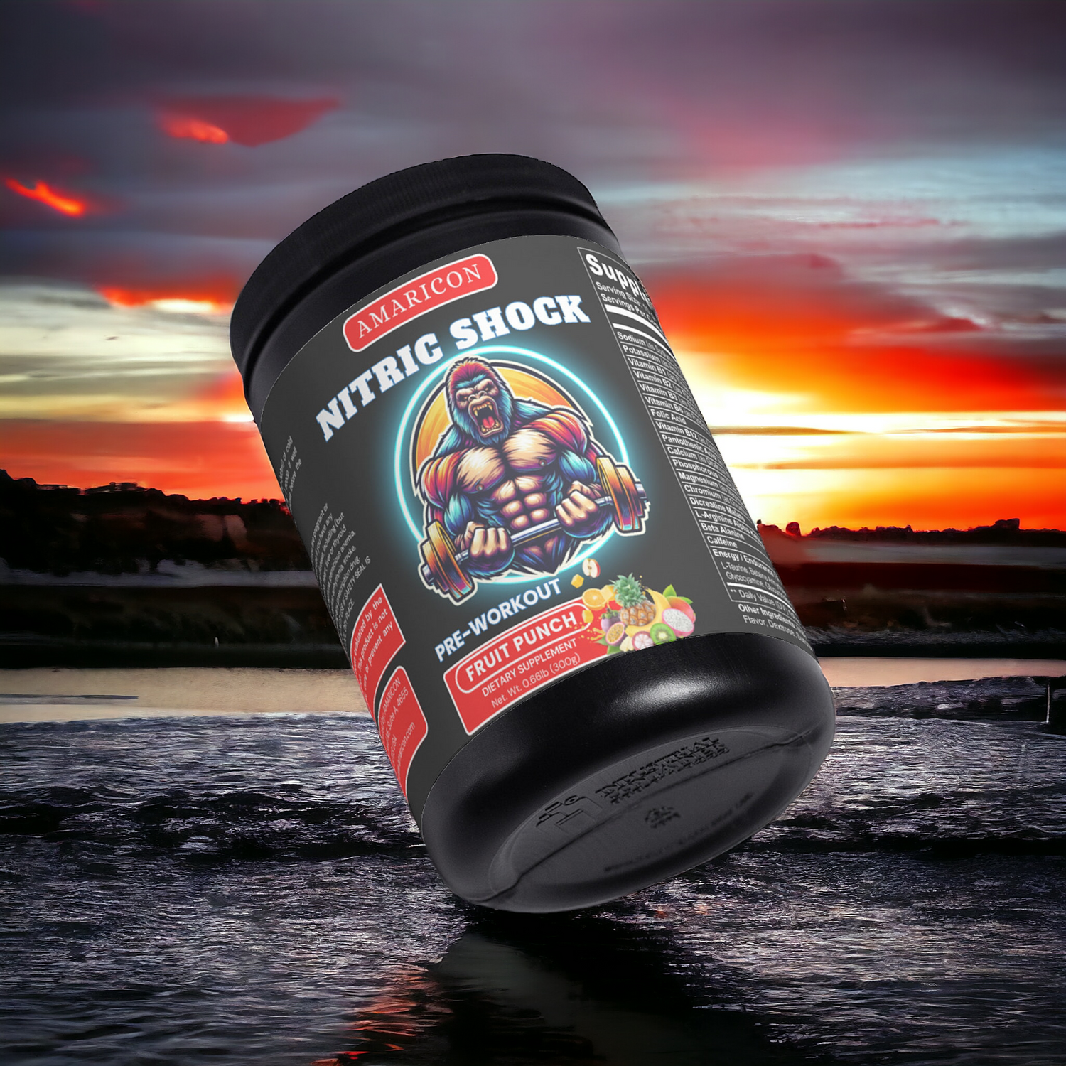 Experience the unmatched power, endurance, and focus of AMARICON Nitric Shock Pre-Workout Powder (Fruit Punch) and elevate every workout to elite levels.