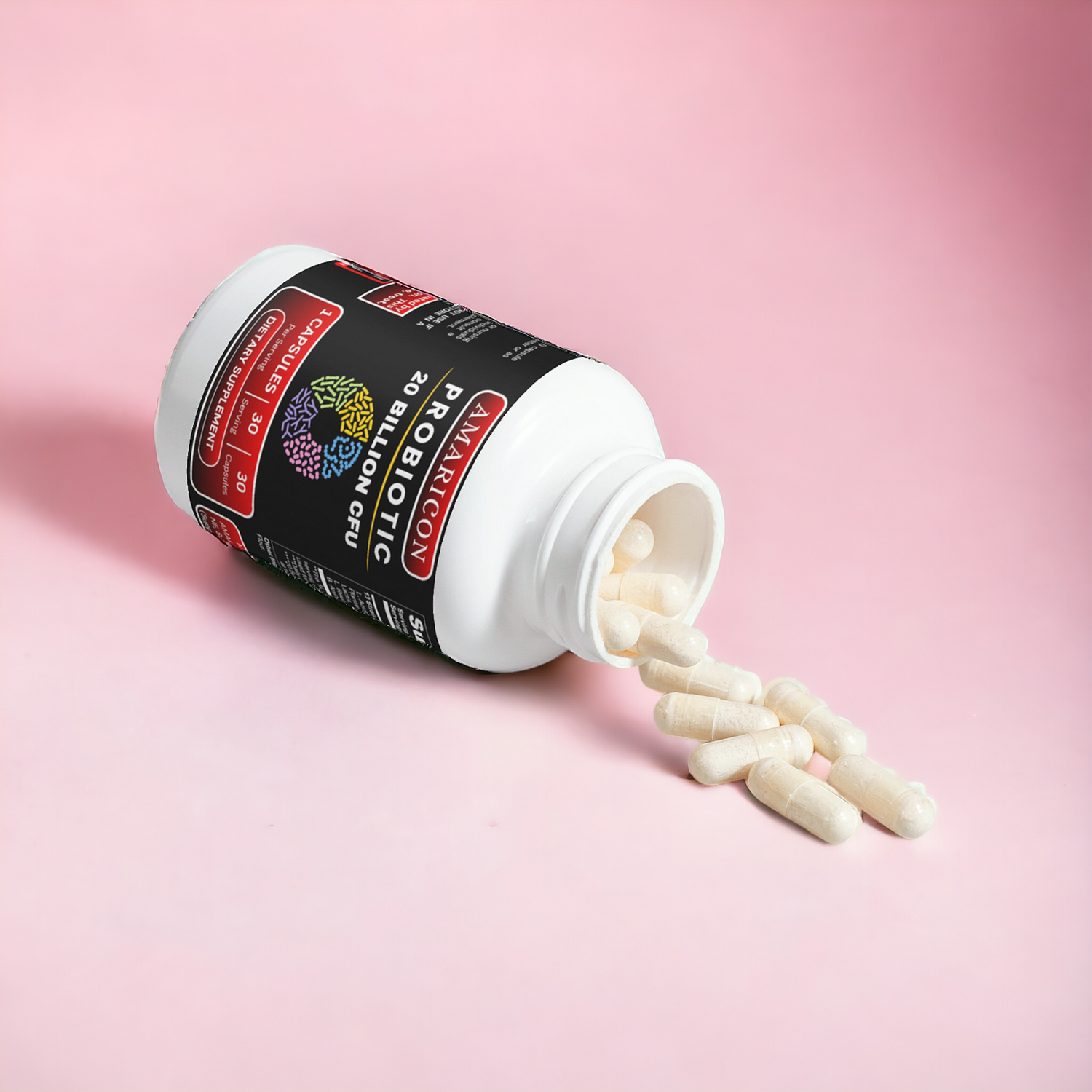 AMARICON™ Probiotic 20 Billion delivers 20 billion CFUs from 10 diverse probiotic strains, including L. Acidophilus and B. Lactis, to help restore and maintain a balanced gut flora. This promotes smoother digestion and improved nutrient absorption, essential for overall wellness.