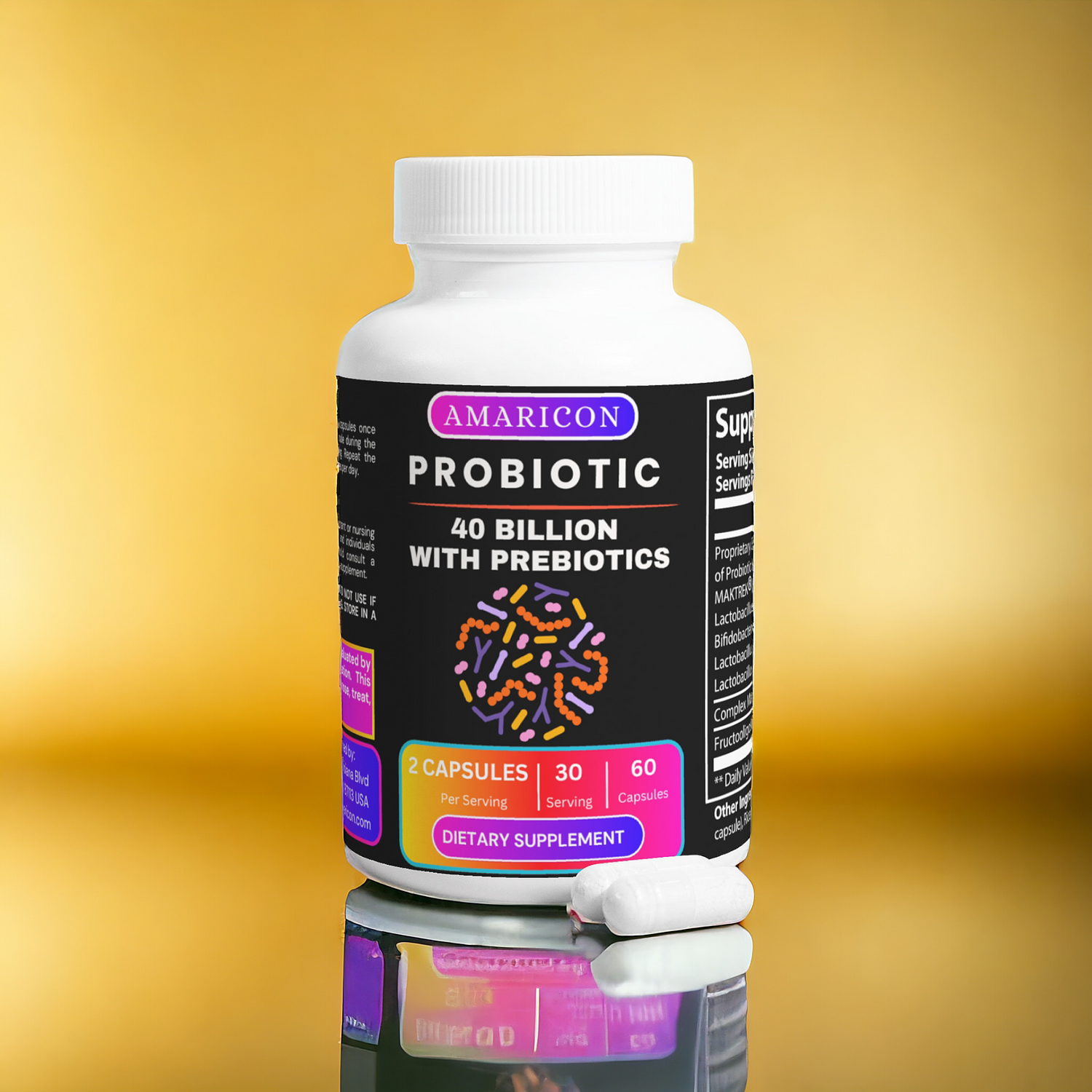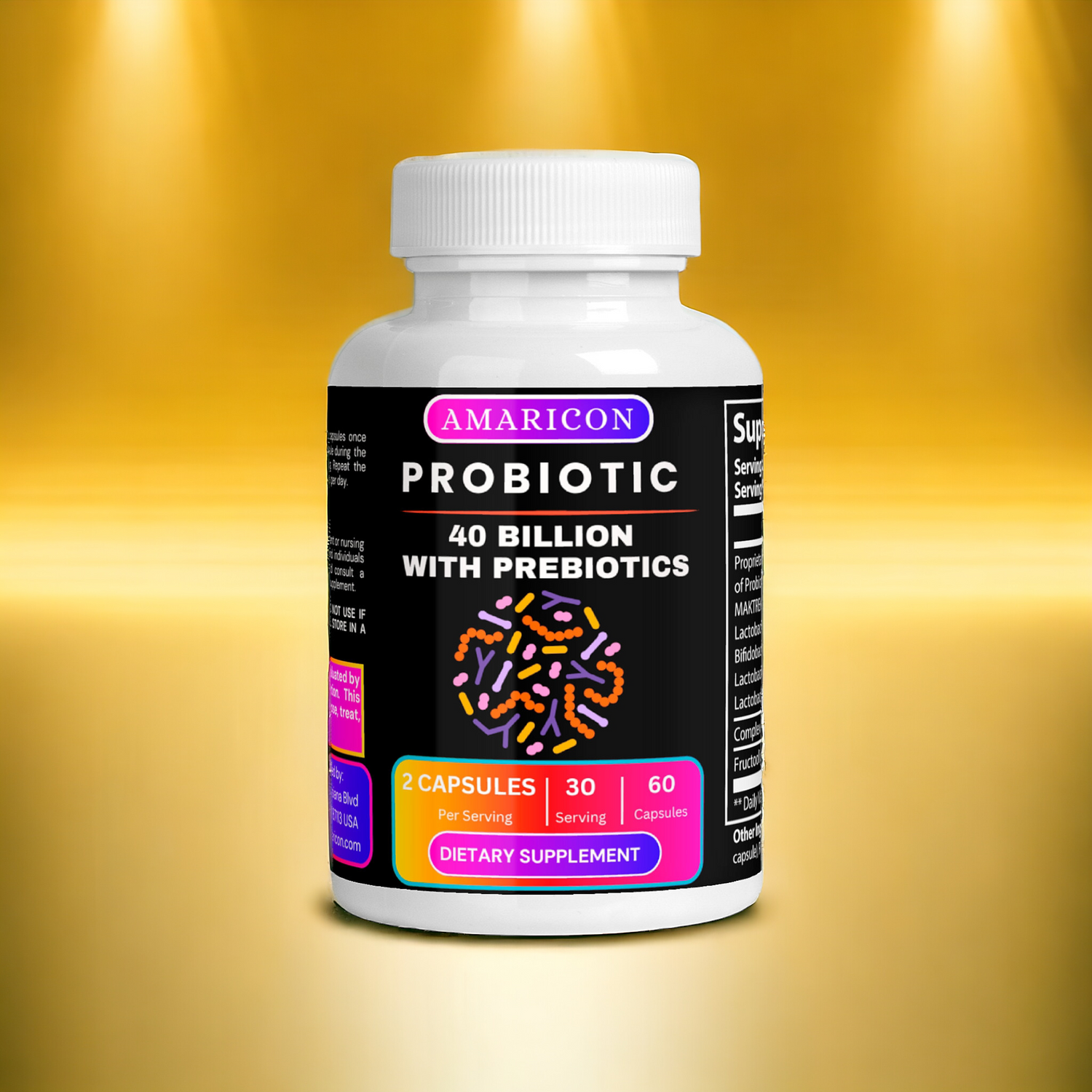 Elevate your digestive and immune health with AMARICON Probiotic 40 Billion with Prebiotics, your essential companion for overall wellness and vitality.