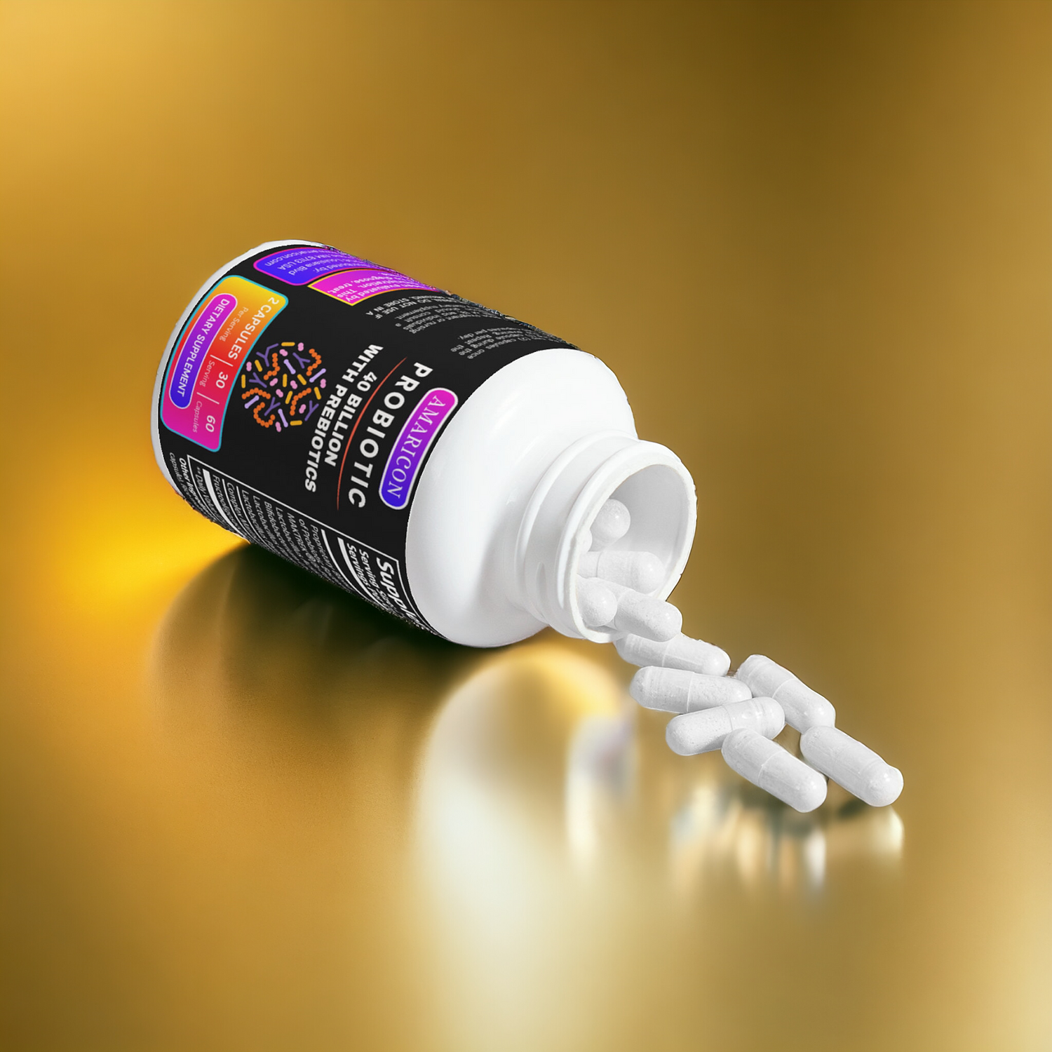 AMARICON™ Probiotic 40 Billion with Prebiotics combines four powerful probiotic strains with MAKTREK® Bi-Pass Technology, ensuring live bacteria reach your gut. This advanced formula restores healthy gut bacteria, improving digestion and nutrient absorption for optimal digestive health.