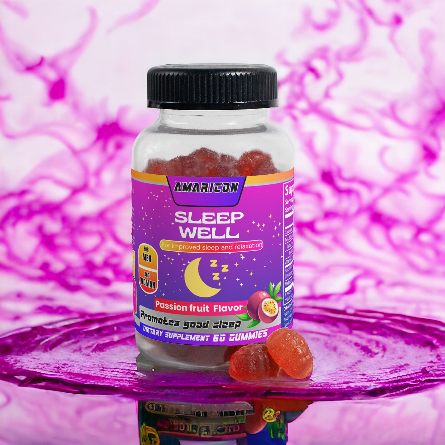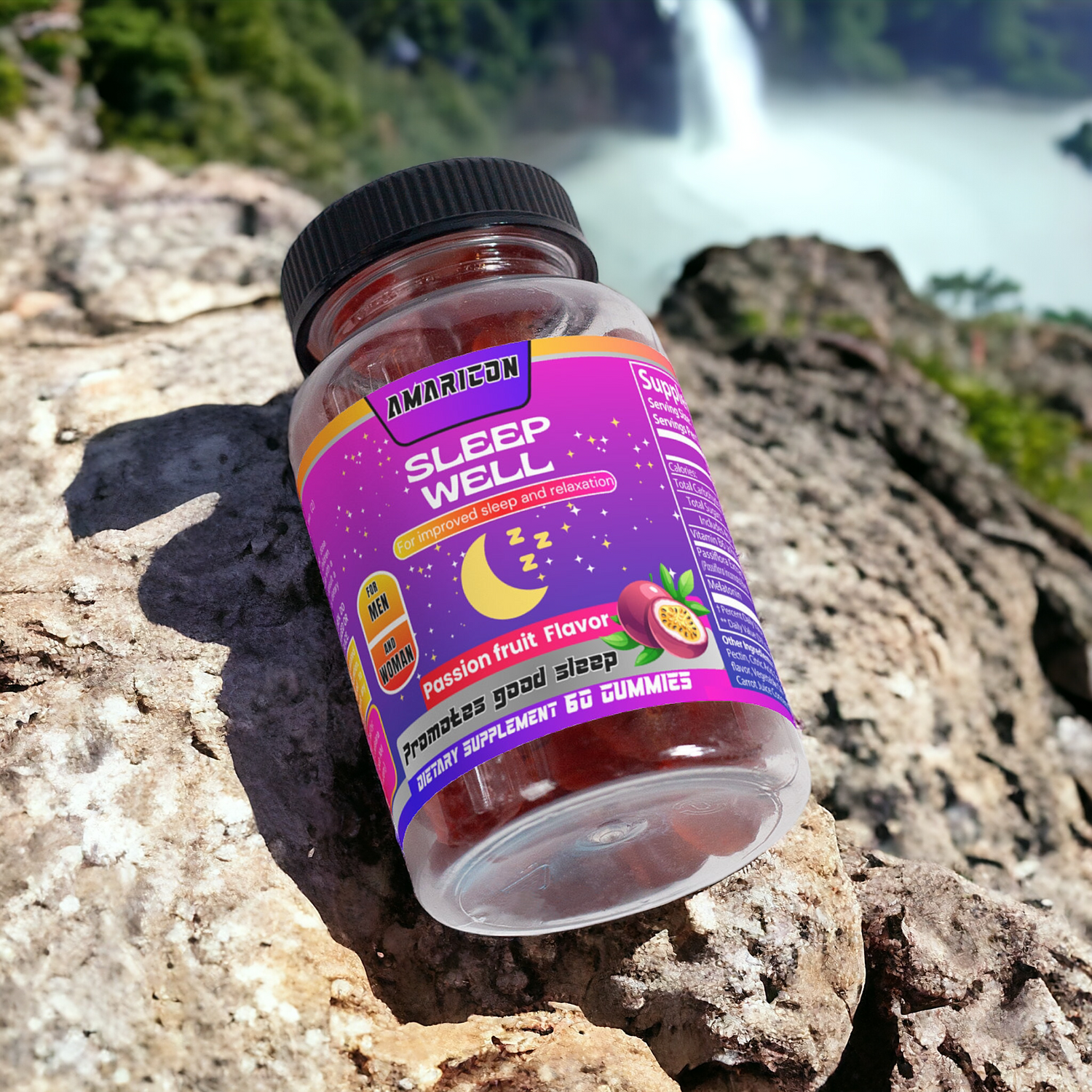AMARICON™ Sleep Well Gummies combine the calming power of Passiflora Extract and Melatonin with a tasty passion fruit flavor, making it enjoyable and convenient to support restful sleep naturally.